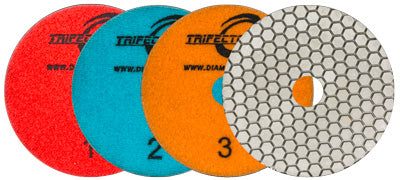 4" Trifecto 3-Step Wet Pad #2 polishing pad designed for fast, smooth stone finishing. Ideal for granite, marble, and engineered stone surfaces. Delivers reliable performance with angle grinders or air polishers.